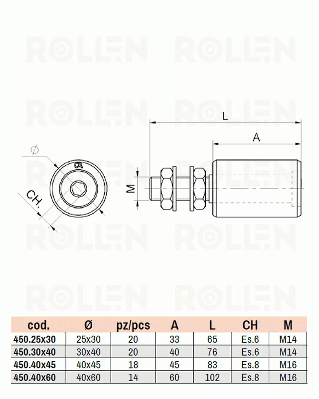 COMBI ARIALDO 450SKH.40x60 – Biztonsági nylon vezetőgörgő rozsdamentes védőburkolattal (Magasított)