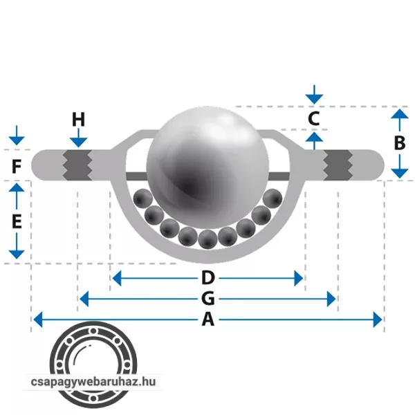 Golyós görgő LD26 , golyó átmérő:25mm , teherbírás:60kg , A=56 mm B=14,6 mm C=7,8 mm D=36 mm E=15,4 mm F=3,3 mm G=45 mm