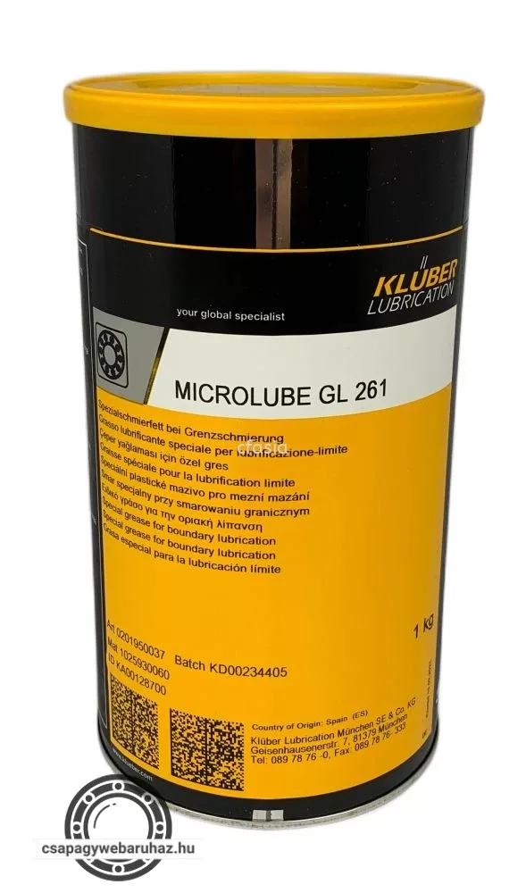 A Klüber MICROLUBE GL 261 egy ásványolaj alapú, speciális lítiumszappant és egyedi MICROLUBE hatóanyag-kombinációt tartalmazó kenőzsír.