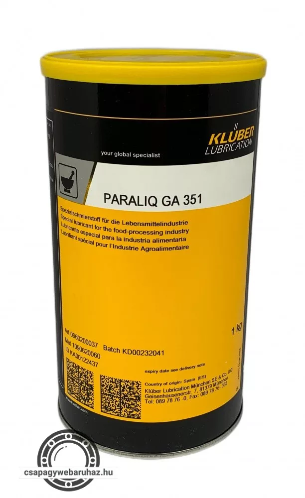 A Paraliq GA 351 bézs színű, alumíniumkomplex-szappansűrítőn alapuló, speciális kenőanyag élelmiszer- és gyógyszeripari felhasználásra.