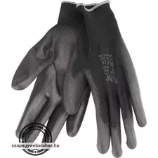 Kötött kesztyű fekete poliészter, méret: 11' poliuretánba mártott teny. és ujjhegy., gumírozott mandzsetta