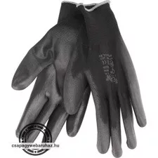 Kötött kesztyű fekete poliészter, méret:  8' poliuretánba mártott teny. és ujjhegy., gumírozott mandzsetta
