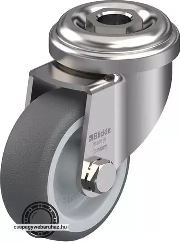 LRXA-PATH 50G BLICKLE Rozsdamentes forgóvillás műszerkocsigörgő hátfurattal, Kerék termoplasztikus poliuretán futófelülettel, poliamid felnivel