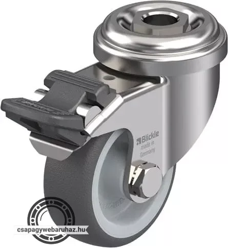 LRXA-PATH 50G-FI BLICKLE Rozsdamentes forgóvillás műszerkocsigörgő hátfurattal, stop-fix fékkel, Kerék termoplasztikus poliuretán futófelülettel, poliamid felnivel