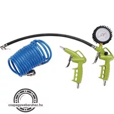 alap légkompresszor tartozék szett, 3db (lefúvató pisztoly, gumiabroncsfúvó pisztoly,spiráltömlő), 1/4" gyorscsatlakozó