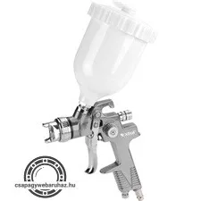 HVLP -High Volume Low Preasure. Ez a felsőtartályos levegős festékszóró magas teljesítményt alacsony levegő nyomáson teljesít. Ezért akár 30%-os festékmegtakarítás is lehetséges. Viszont fontos kritérium, hogy az alacsony nyomás mellett viszonylag magas térfogatáramú (150-410 Liter/perc) táplevegőre van szükség a megfelelő működés érdekében, ezt a termék kiválasztásakor figyelembe kell venni! Szükséges továbbá, hogy a táplevegő kondenzátum, illetve olajköd keverék mentes legyen! Javasolt szűrők: 8865101 vagy 8865104.
