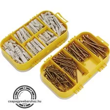 forgácslapcsavar és műanyag tipli klt.; 170db, műanyag tároló dobozban