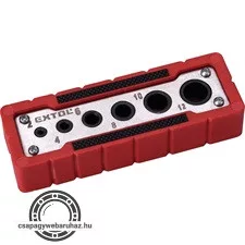 Műanyag ház, 6 db rozsdamentes acél megvezető hüvely: 2 - 4 - 6 - 8 - 10 - 12 mm fúrószárakhoz.