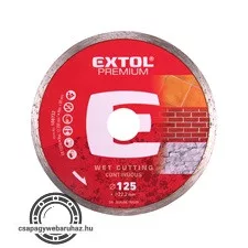 A gyémántvágó korongok nagy teljesítményű szerszámok melyek alkalmazásuk során nagy génybevételnek vannak kitéve. Az Extol Prémium gyémántvágó korongok megbízható, általános felhasználású vágószerszámok, melyek megfelelő biztonságot garantálnak Önnek a munkavégzés során  A  gyémántvágó korongot csempe, üveg, porcelán, kerámia, márvány, pala, vágásra lehet használni. A megfelelő használatát a termék melletti tájékoztatóban olvashatja.
