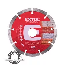 A gyémántvágó korongok nagy teljesítményű szerszámok melyek alkalmazásuk során nagy génybevételnek vannak kitéve. Az Extol Prémium gyémántvágó korongok megbízható, általános felhasználású vágószerszámok, melyek megfelelő biztonságot garantálnak Önnek a munkavégzés során  A  gyémántvágó korongot beton, tégla, cserép, téglafal, kő, gránit vágásra lehet használni. A megfelelő használatát a termék melletti tájékoztatóban olvashatja.