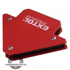 Állandó mágnes, ferrit. Nyíl forma alakzat, szögek: 45° - 90°-135°. Méretek: 120×83×14mm. Max. összeszorító erő: 11 kg