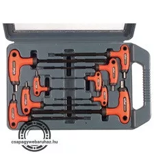 imbuszkulcs klt. 9db, gömbfejű (25° munkaszög), CV., gumírozott T-nyelű,  2, 2,5, 3, 4, 5, 6, 7, 8, 10mm, műanyag koffer