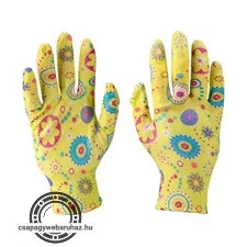 kerti kesztyű, virágmintás, nylon, méret:  8' nitrilbe mártott teny. és ujjhegy., gumírozott mandzsetta