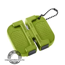 méretek: 70×52×15mm, kültéri használatra is, ABS ház csúszásgátló gumitalppal, keményfém (carbide) betét durva élezéshez és kerámia betét finom élezéshez, mindenféle sík (nem fogazott) acél pengéhez..