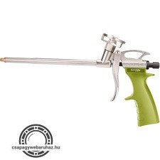 A purhab pisztoly cserélhető műanyag adagolócsövének segítségével a hab pontosan a kívánt helyre jut ki. A krómozással történő felületkezelés növeli a korrózióval szembeni ellenálló képességet. Az anyaggal való maximális takarékoskodás érdekében a kinyomó pisztoly szabályozócsavarja a habáramot a szükséges szélességűre állítja.