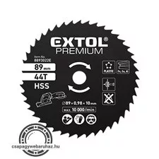 körfűrészlap, HSS, 89mm, 44T a 8893022 mini körfűrészhez, műanyagra, puhafémekre, gipszkartonra