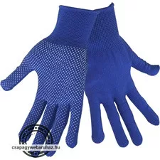 kötött kesztyű, kék, PE, fehér PVC pöttyökkel, méret: 9'