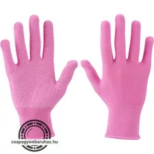 kötött kesztyű, rózsaszín, PE, fehér PVC pöttyökkel, méret: 7', Extol Lady