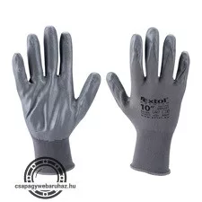 kötött kesztyű szürke nylon, méret: 10' nitrilbe mártott teny. és ujjhegy., gumírozott mandzsetta