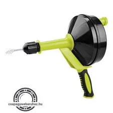lefolyócső tisztító, dobos, 6m, 6mm átmérő, kézi tekerővel, (1,8mm drótból sodorva)