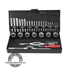 menetfúró menetmetsző klt., fém dobozban; 32db M3-M12, jó minőségű szénacél