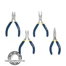 mini fogó klt. 4db-os, dupla műanyag nyéllel; kombinált, oldalcsípő, hosszú csőrű, rádiós ,125mm