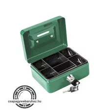A felső lemezborításon érme bedobó nyílás található, belül műanyag érmetároló rekeszek vannak.