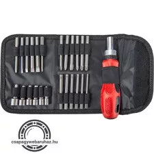 racsnis csavarhúzó-dugókulcs klt., 25 db, Cr.V. acél