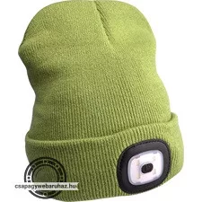sapka, zöld, kötött, kivehető LED homloklámpával, 4×45 Lumen; USB tölthető Li-ion akku, 3 funkció (100%-75%-50% fényerő)