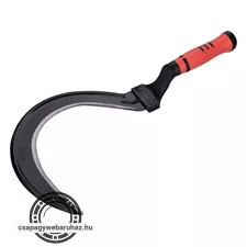 Kerti munkára alkalmas, két komponensű műanyag markolat időjárásálló PP+TPR anyagból, kiváló mínőségű kovácsolt acél penge, HRC 45-50 keménység, fekete bevonattal. Műanyag tartó hordozó füllel, biztosító retesszel, a pengén élvédővel. A tartóban élezőkő: 80×18×4mm.