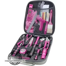 szerszámkészlet, 68db; Extol Lady, rózsaszín, fogó, csavarhúzók, kalapács, BIT-ek, melegragasztó pisztoly, LED-lámpa